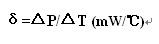 即:在规定的环境温度下,热敏电阻器耗散功率变化率与其相应温度变化之比。它表示使热能电阻体升高1℃温度所需消耗的功率。在工作温度范围内,δ随环境温度变化而有所变化。